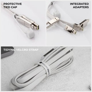 inCharge XL has 6 different charging combinations that can virtually charge any device from any power source. It allows data transfer and ultra fast charging up to 100W and Apple's Fast Charging up to 27W. Whether you need to fast charge your iPhone, iPad, Android device, laptop, or any other portable device, the multi cable inCharge XL has got you covered.